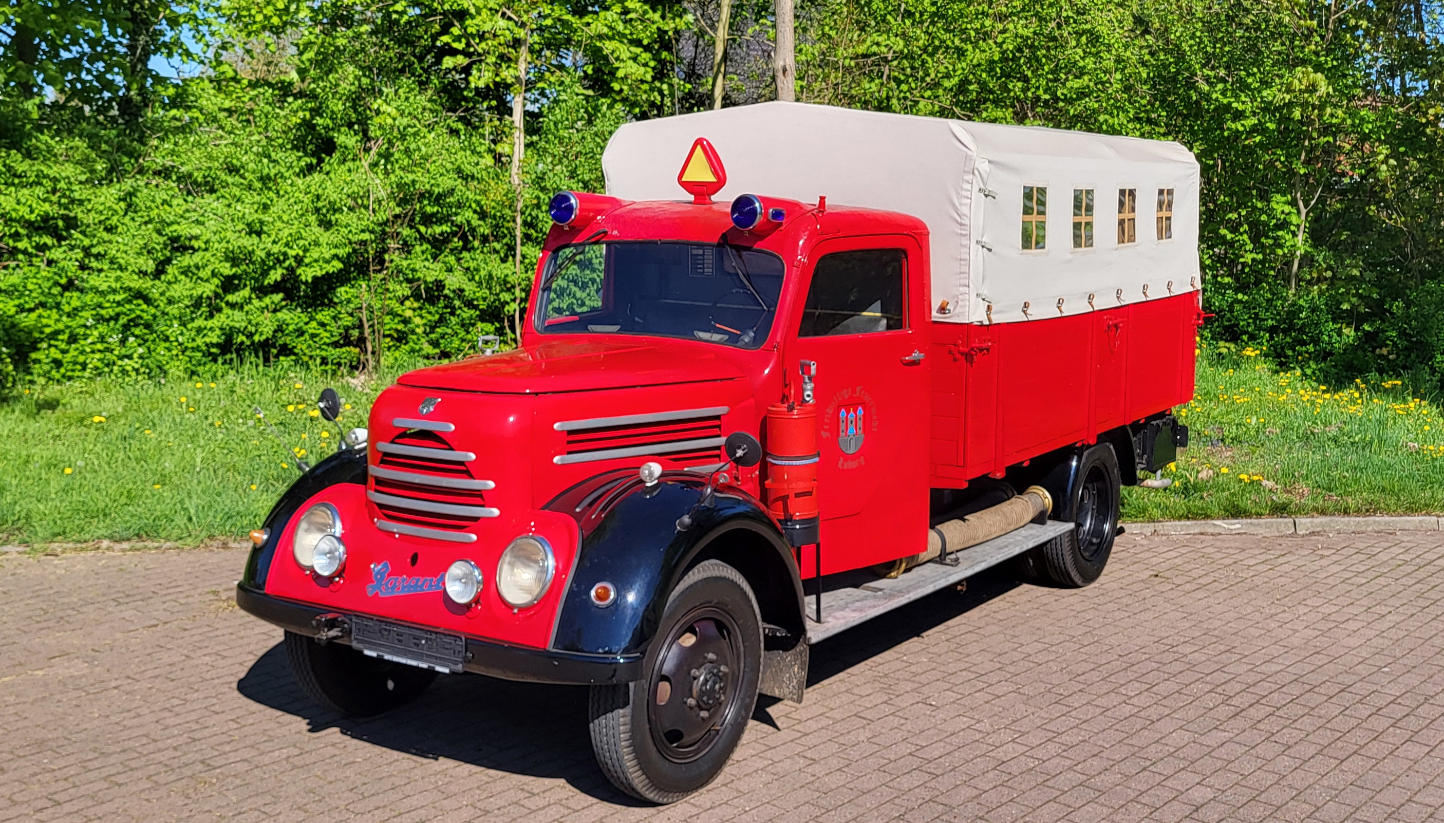Das Kleinlöschfahrzeug ausgestattet mit einer Tragkraftspritze 8 und einem Schlauchhaspel-Nachläufer bot Platz für 5 Kameraden. Es war ein kostengünstiges und wendiges Lösch-fahrzeug. Das Fahrzeug zeichnete sich besonders durch seine erweiterte Ausrüstung für eine Löschgruppe aus. Die Tragkraftspritze 8 (TS 8/8) war im Fahrzeugheck eingeschoben und konnte 800 l Wasser pro Minute fördern. Der ungebremste Schlauchhaspel-Nachläufer war mit 10 B-Druckschläuche zu je 20 m Länge bestückt. Somit konnte eine Wasserversorgung über 200 m aufgebaut werden. |